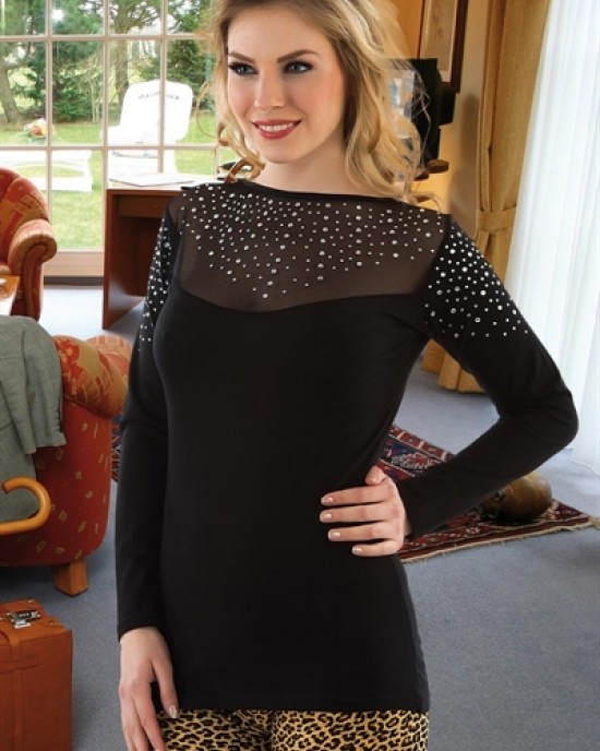 Her yaştan bayanın dikkatini çekecek modernlikte ve şıklıkta. Göğüs kısmı tamamen tülden oluşan ve taşlarla ayrı bir hava katılan üst uzun kollu olarak tercih ediliyor. Omuzlarına kadar düşen taşlar ise şıklığına şıklık katarak karşınıza geliyor.